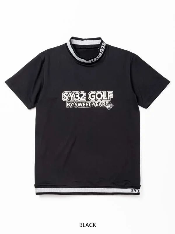 薄手軽量のストレッチ素材を使用したモックネックシャツ。サラサラとした肌触りで清涼感のあるドライ素材。フロントにインパクトのあるロゴプリント、襟と裾はライン入りの編立てリブを採用。