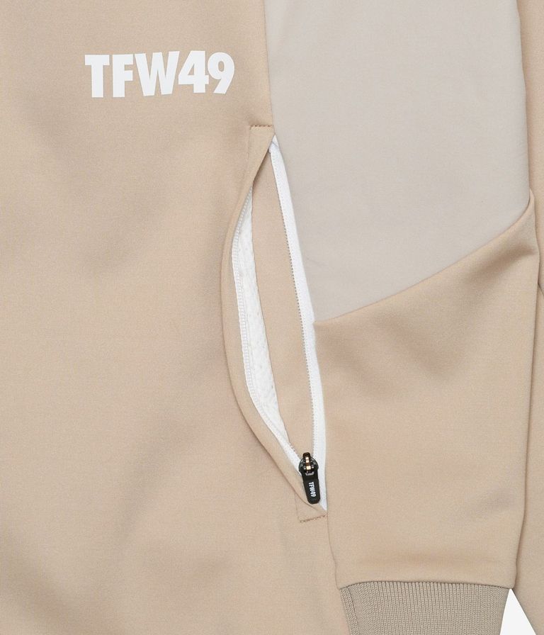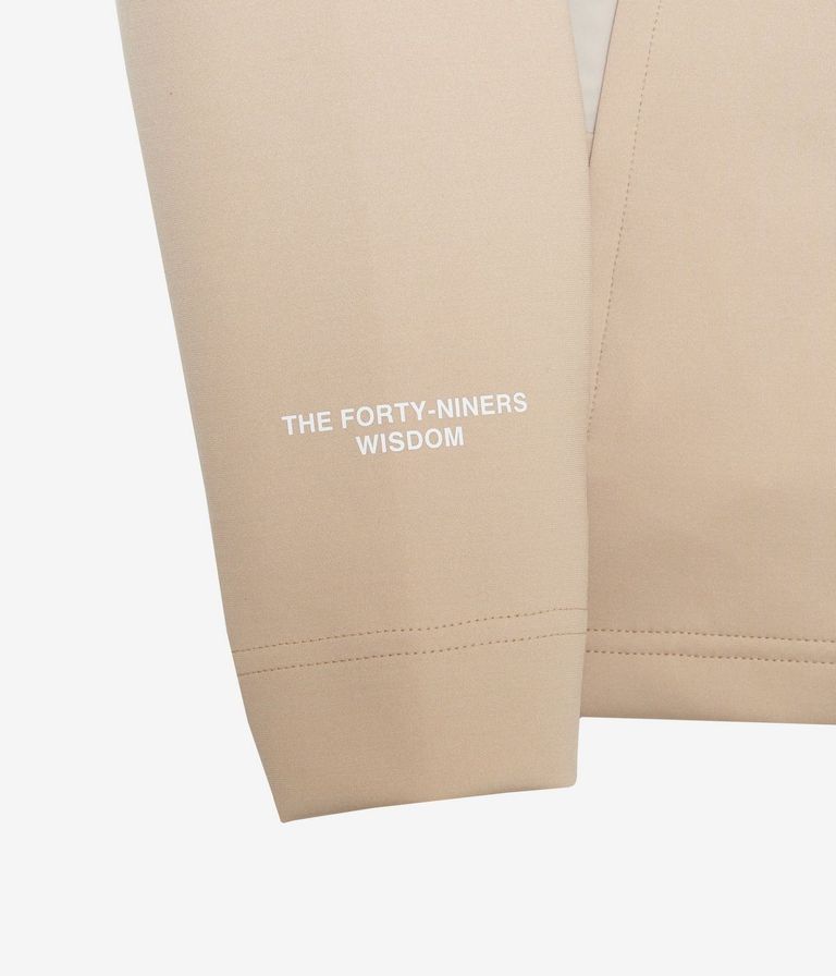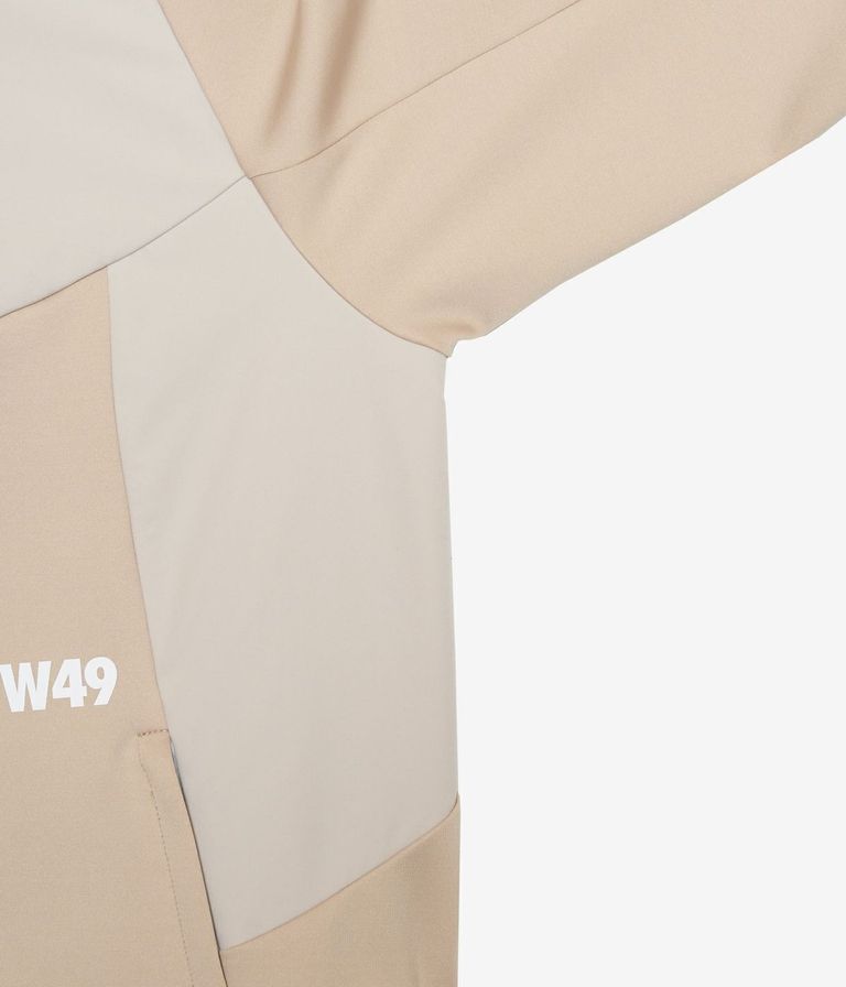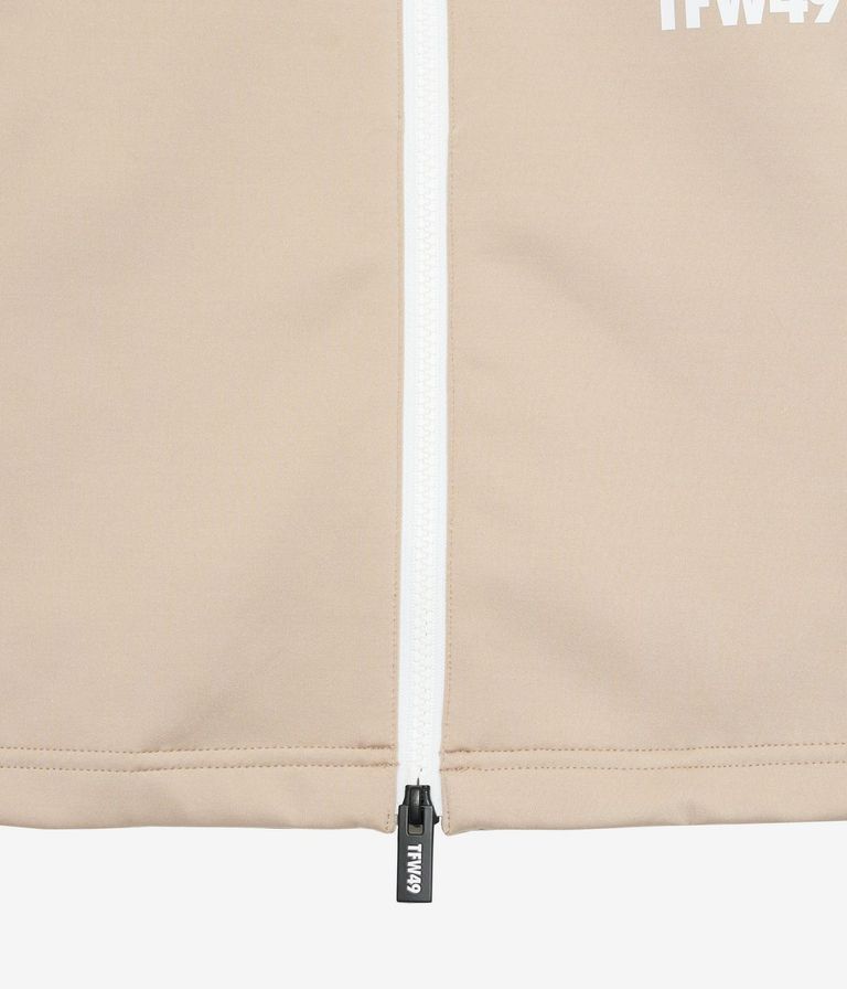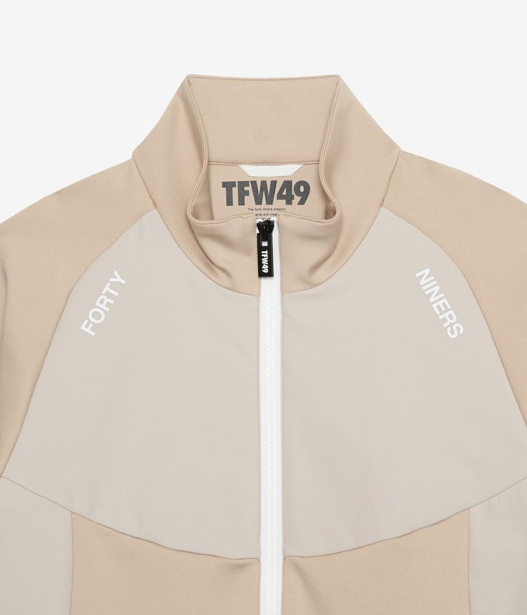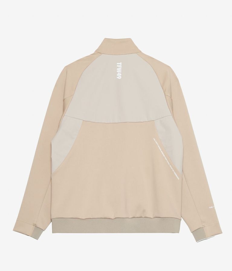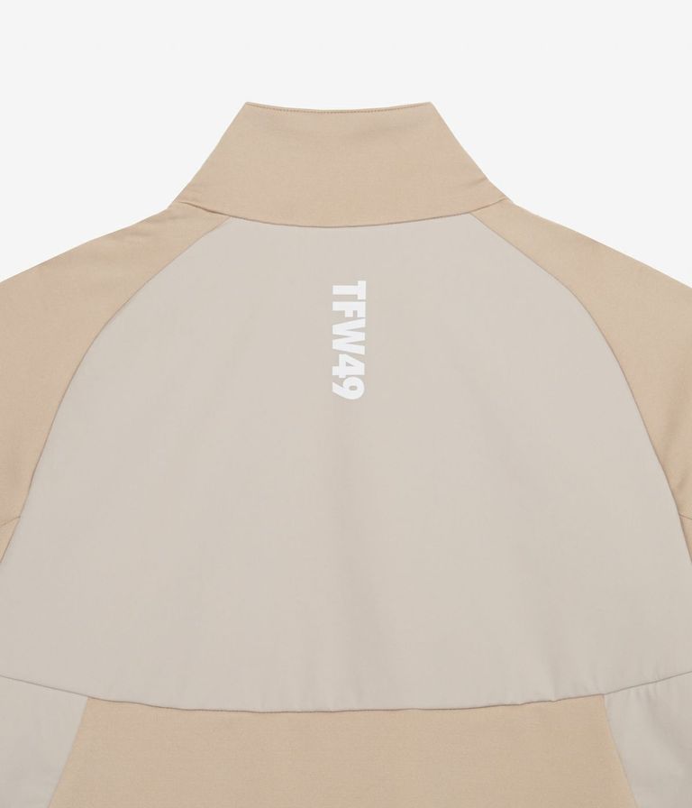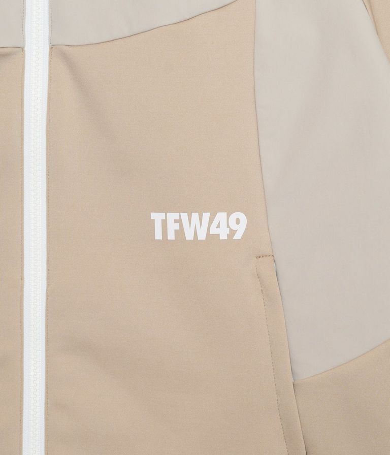 前後身頃や袖下の切り替えには、ドライタッチのストレッチ素材を上から重ねることで耐久性を高めながら、素材の質感コントラストによって上品なスポーティーさを演出。袖口と裾はリブ仕様で風の侵入を防ぎ、アクティブな動きにも対応します。