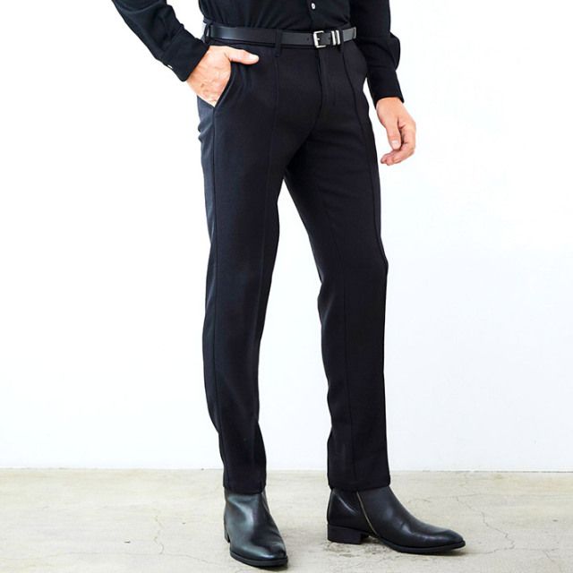 ウールライク カルゼ ストレッチ 美脚パンツ ウォッシャブル | ブラック | メンズ