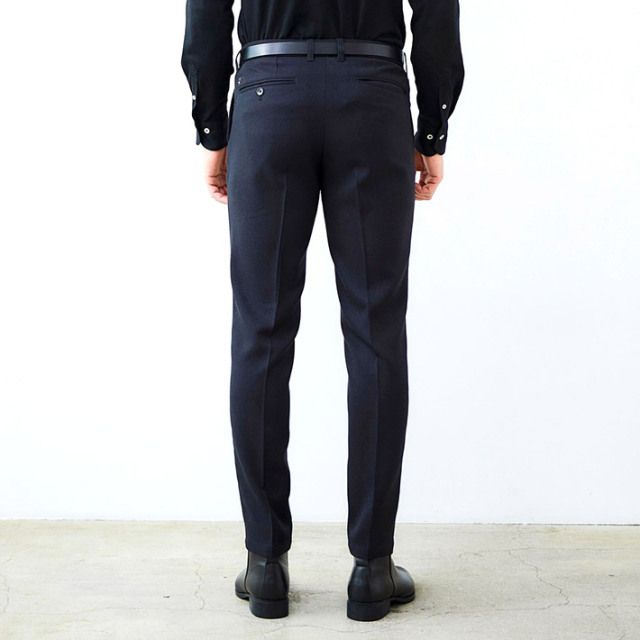 しっかりとしたハリとしなやかで柔らかい肌触り、窮屈感のないストレスフリーな着心地を実現したスラックスです。