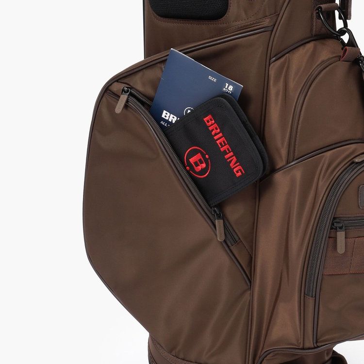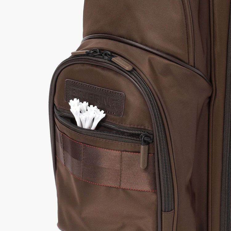 ・フードやレインウェアなど嵩張るアイテムの収納に便利な両サイドのポケットは、開口部のカッティングを変更。新たにファスナーポケット(小)を追加し、ラウンド時の実用性を高めた仕様に。