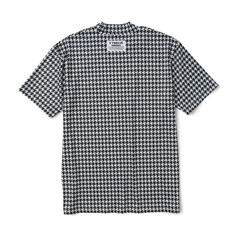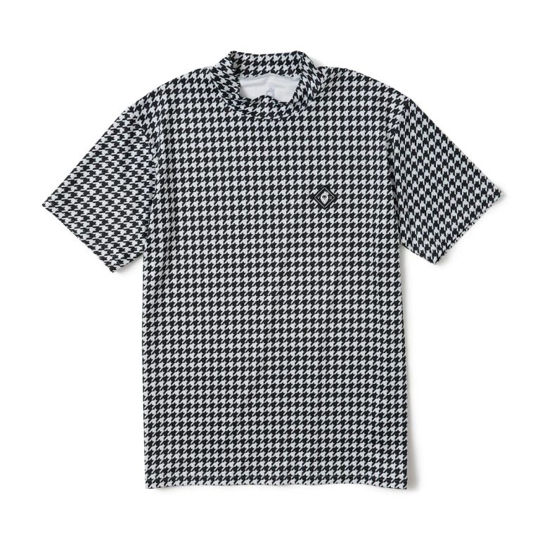 細かな千鳥格子の総柄がインパクト抜群のモックネック。