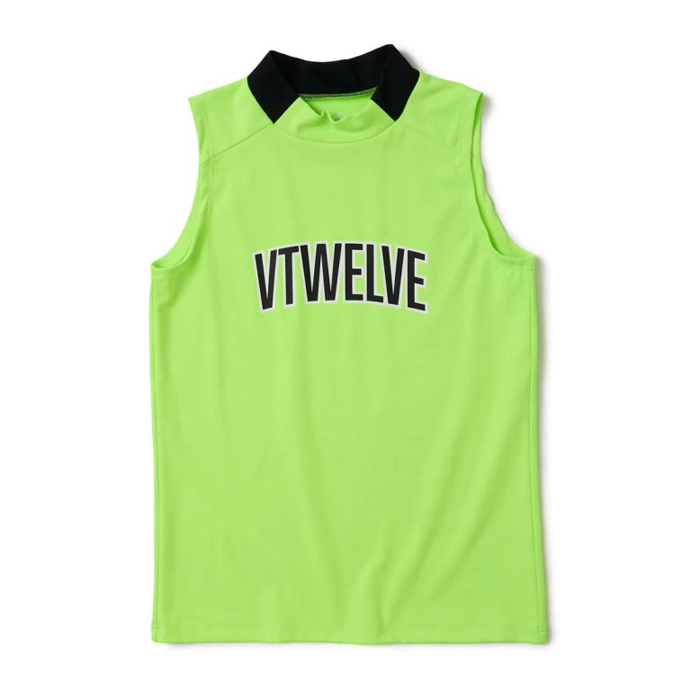 ネックのバイカラー切り替えがポイントのノースリーブモックネック。